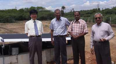 Field visit to over see a bioremediation project in Ranipet established by the Dept of plant biotechnology, Vivekenanda College, Chennai which saves the entrepreneur almost Rs. 30 lakh (Indian Rupees) per annum. From Left to Right: Dr Yoshioka, Mr. Negamiah, Dr aV. Sivasubramanian & Mr. Raghavan. @ Dr Sivasubramaniam and Mr Raghavan (Vivekananda college) explained to Dr Yoshioka the beneficial effects of the microbes in preserving the environment as they prevent environmental damage by making us avoid usage of harmful chemical agents for bioremediation. Potentials for joint research and development as well as adaptive research of the technology developed in Japan for Indian applications in the allied field were proposed. |