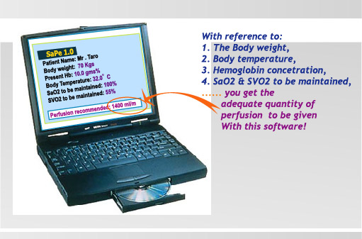 SaPe 1.0@ (Acronym of Safe Perfusion) A software for Cardiopulmonary bypass which is an outcome of 7 years of research both clinical and experimental in leading laboratories and hospitals in Japan. It is based on the principle that the oxygen demand should be exactly supplied during CPB ..neither less nor more... @ For further enquiries please contact us by email: |