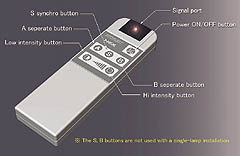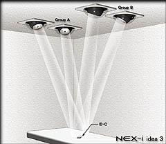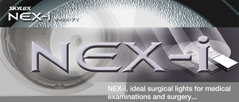 NEX-i ("nex-eye") A ceiling surgical lamp of a design that blends in well with its surroundings, instantly and easily controlled with an infra-red beam signal emitted from its hand-held EC remote control. NEX-i Available as a single lamp unit or as a combination of several lamps, makes this surgical lamp ideal lighting system for ICU, LDR, birthing rooms in human or veterinary hospitals and clinics. NEX-i Special Features... Several surgical lamps in the same room can be synchronized and focused on one light field at the surgical or examinationsite and easily operated with the same Emit Conductor (Auto Wand Remote), independently or together. Emit Conductor (Auto Wand Remote) The operation panel of EC remote control provides three buttons (A, S, B) for three operation modes controlled by an infra-red beam emitted from EC remote and aimed at the FEA sensor positioned next to the surgical lamp in the ceiling to adjust the surgical lamp accurately to the desired position.with a single lamp installation, press A button and move the remote to adjust the position of the lamp. With two or more lamps, press the S (Synchro) button to enter the synchro mode and then adjust the position of the lamps together, or press the A or B button to adjust the A or B lamp, or the A or B group if paired lamps are used. The power button and intensity button are used to operate all the surgical lamps together. |